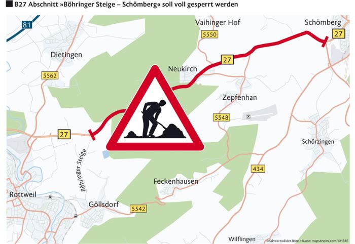 Die B 27 zwischen Schömberg und Rottweil soll für ein halbes Jahr gesperrt werden.